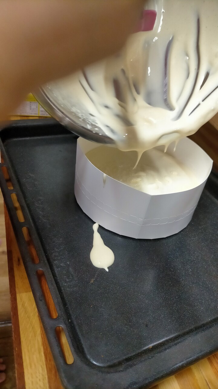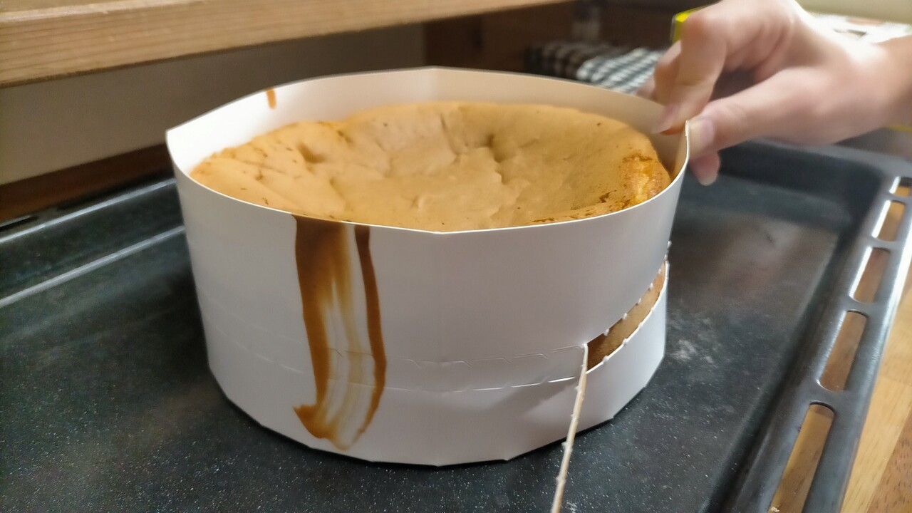 組み立てて生地を流し込んで(こぼしちゃったけど)、