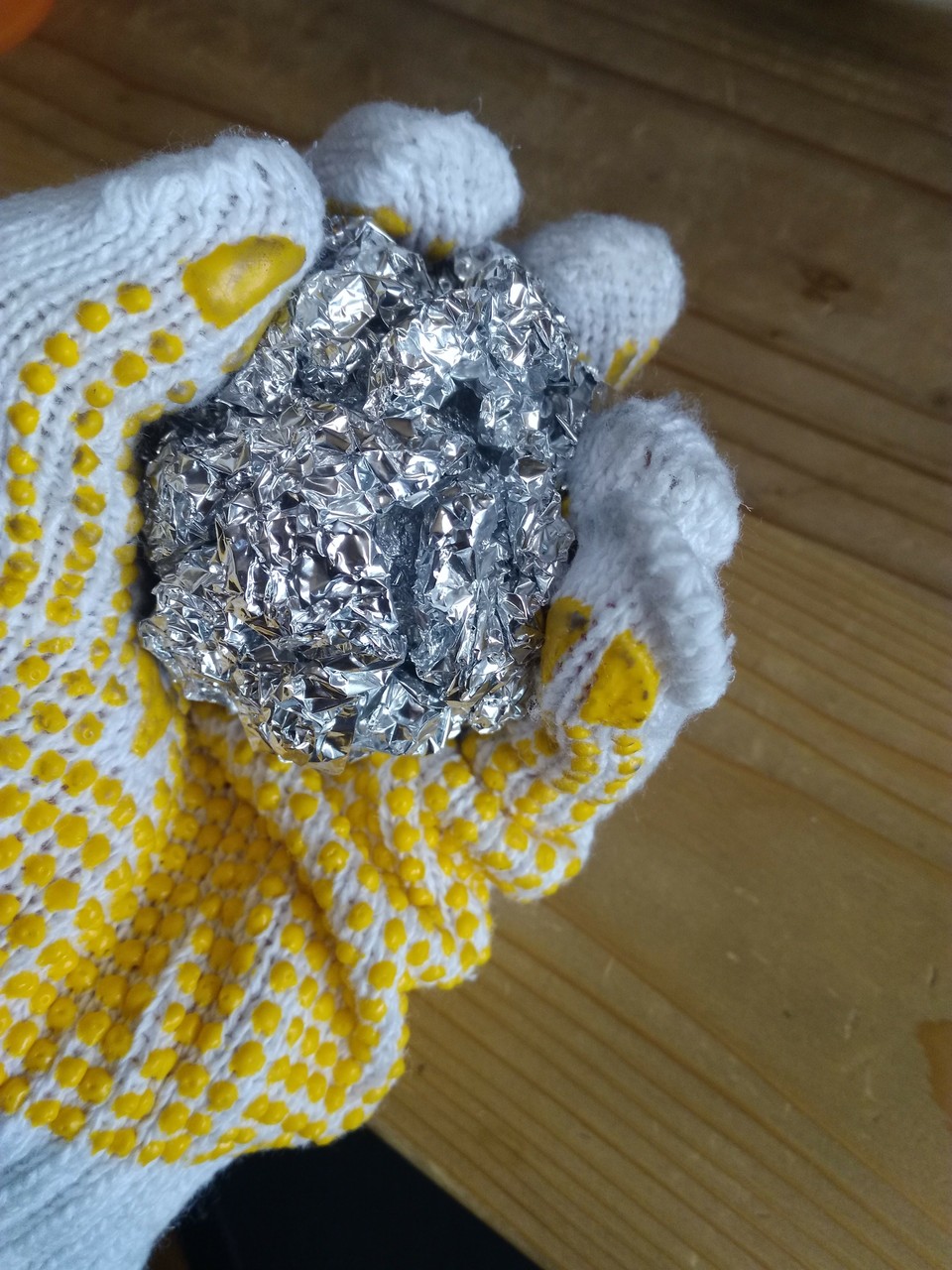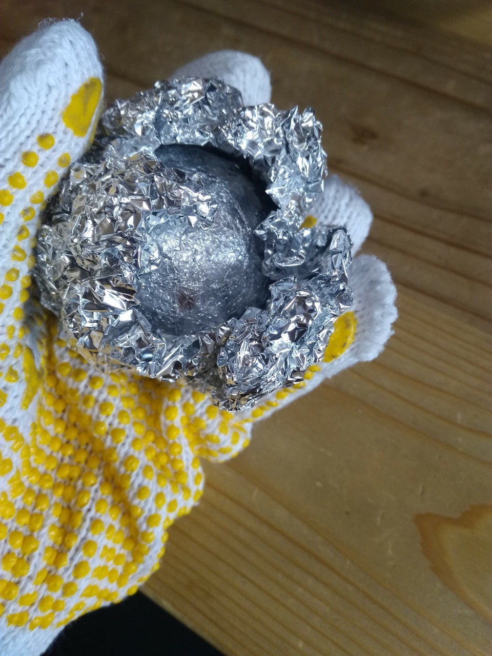 アルミホイルを叩いて球にするやつ、