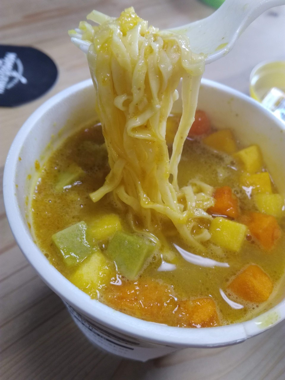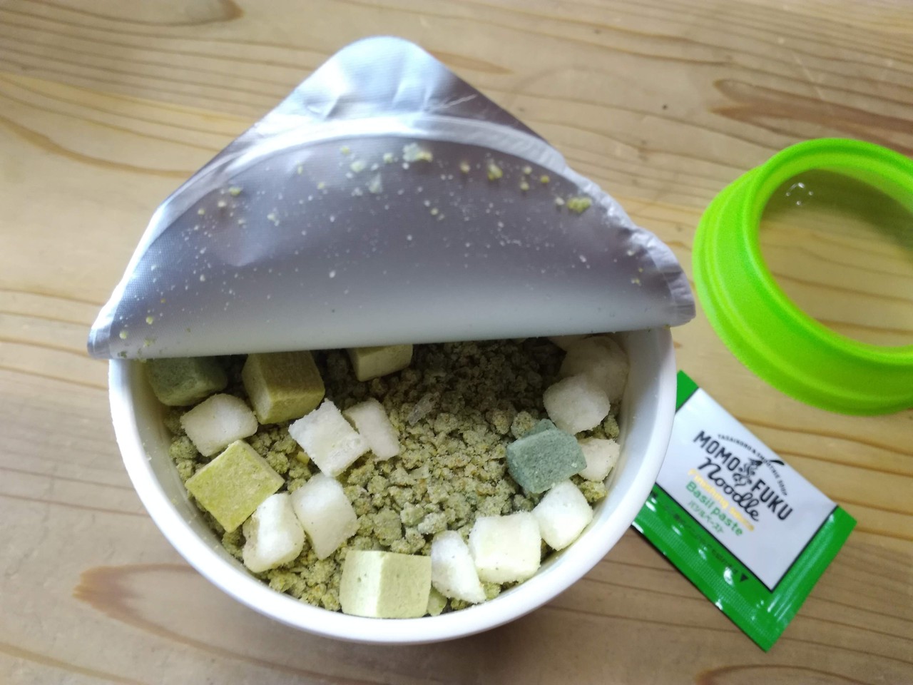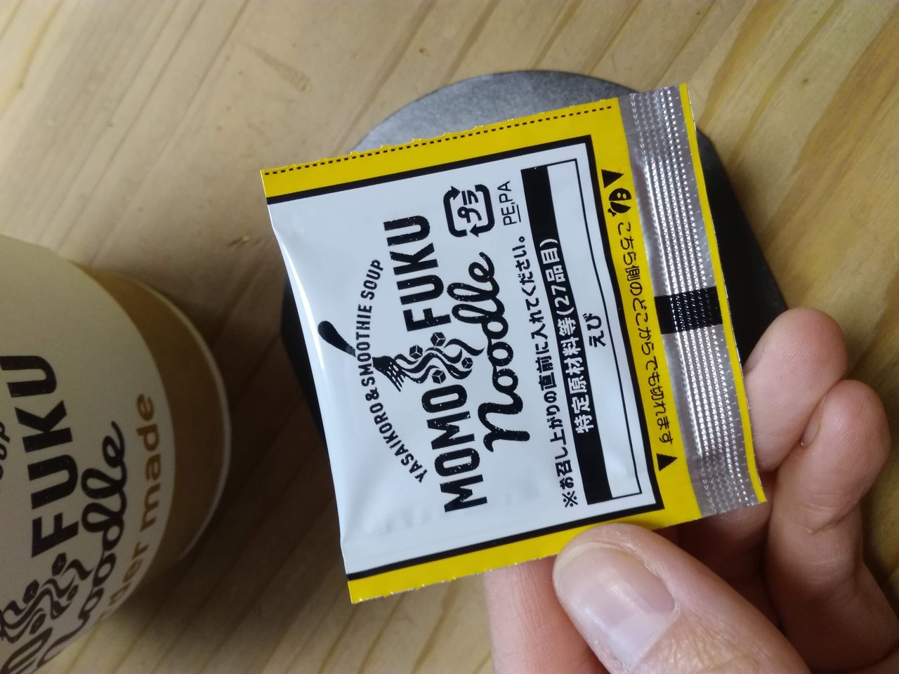 さてさてMOMOFUKU NOODLEを食べてみましょう食べてみましょう。持ち手兼カバー?を外すとこんな感じ。謎の小袋が入っていますね。選んだヤサイコロ(具材)はパッケージにチェックしてあります。スタバっぽいですね!パッケージデザインも。このチョイスに合わせたのはRedの ...